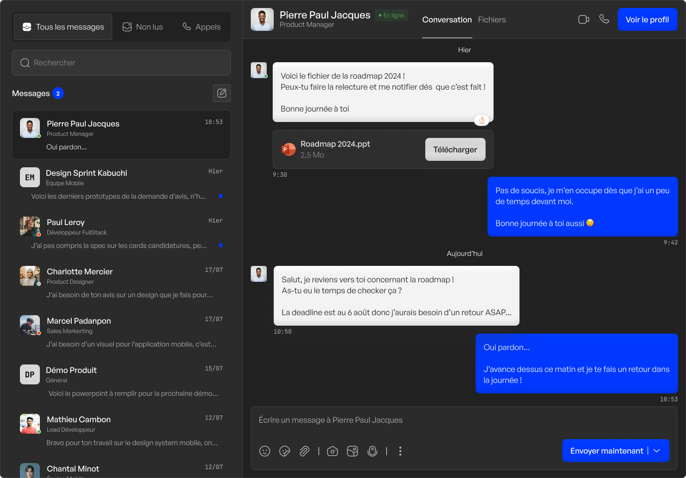 On se parle à intervalles réguliers pour valider, ajuster, décider.
